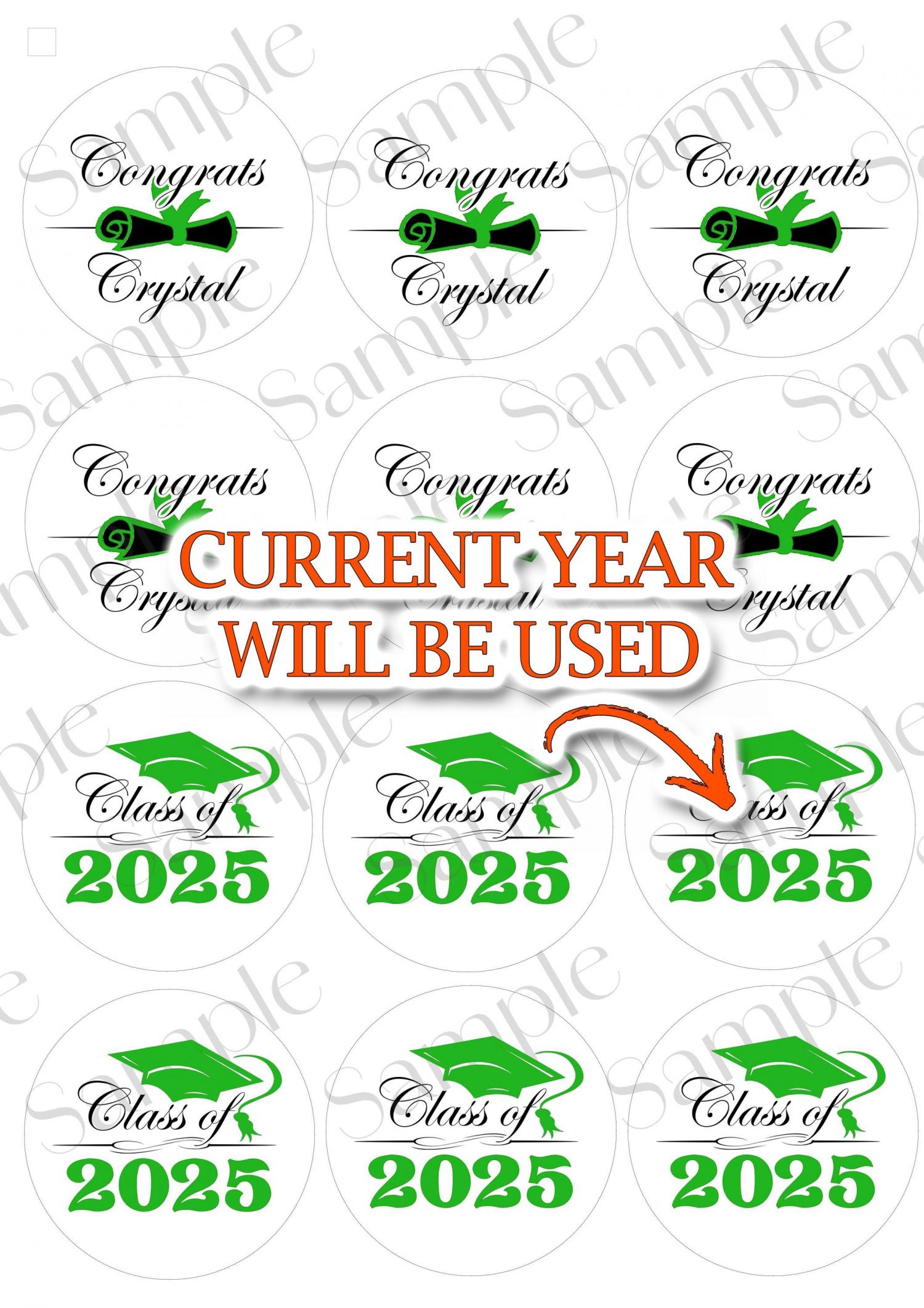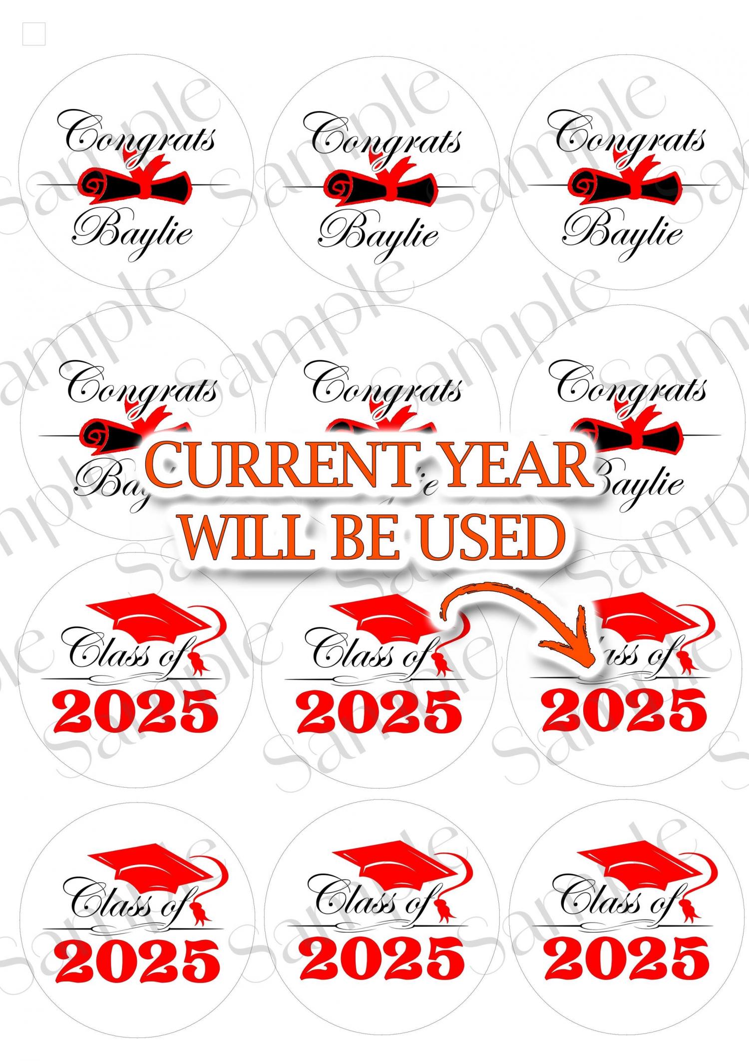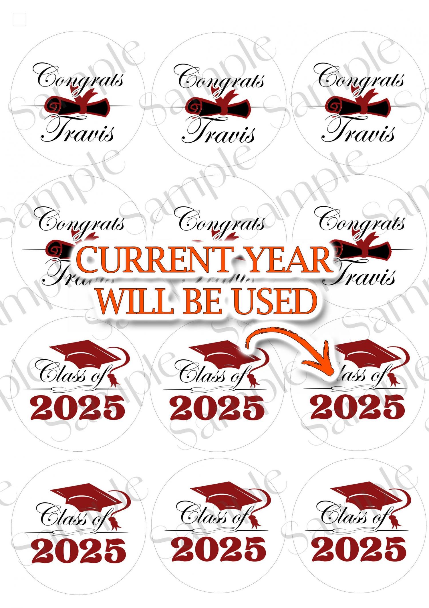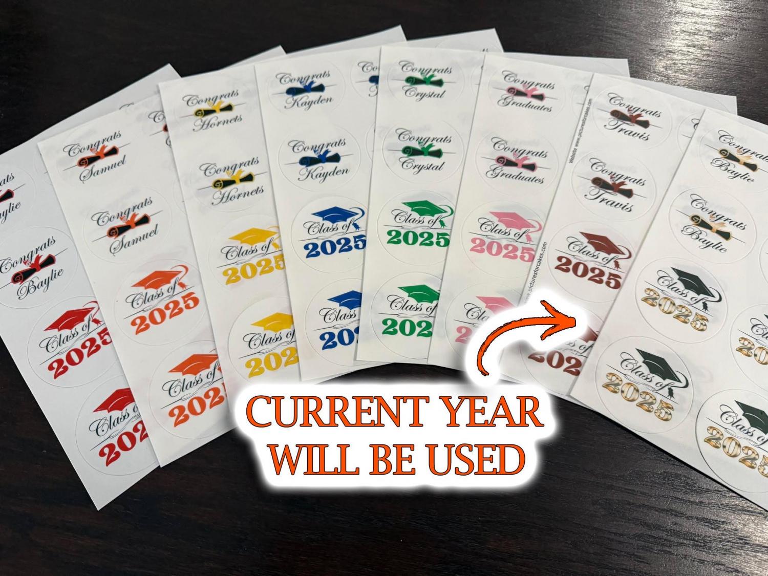 La moitié dira l'année en cours et l'autre moitié sera personnalisée comme l'image montrée. Si vous souhaitez qu'ils indiquent tous l'année, je peux le faire aussi, faites-le moi savoir ! Fabriqué avec du papier glacé comestible PREMIUM et de l'encre comestible PREMIUM. Vous obtiendrez de magnifiques impressions!