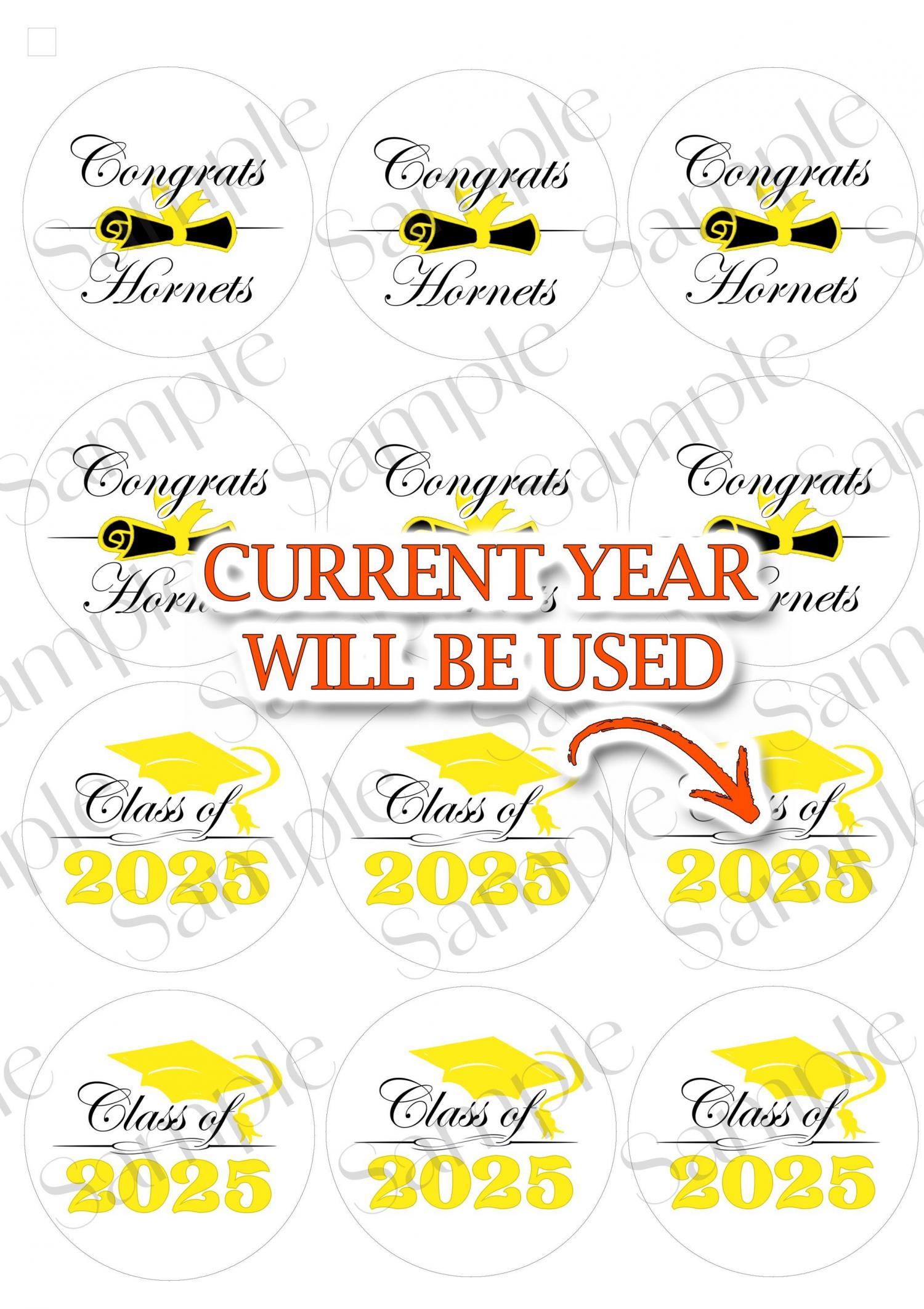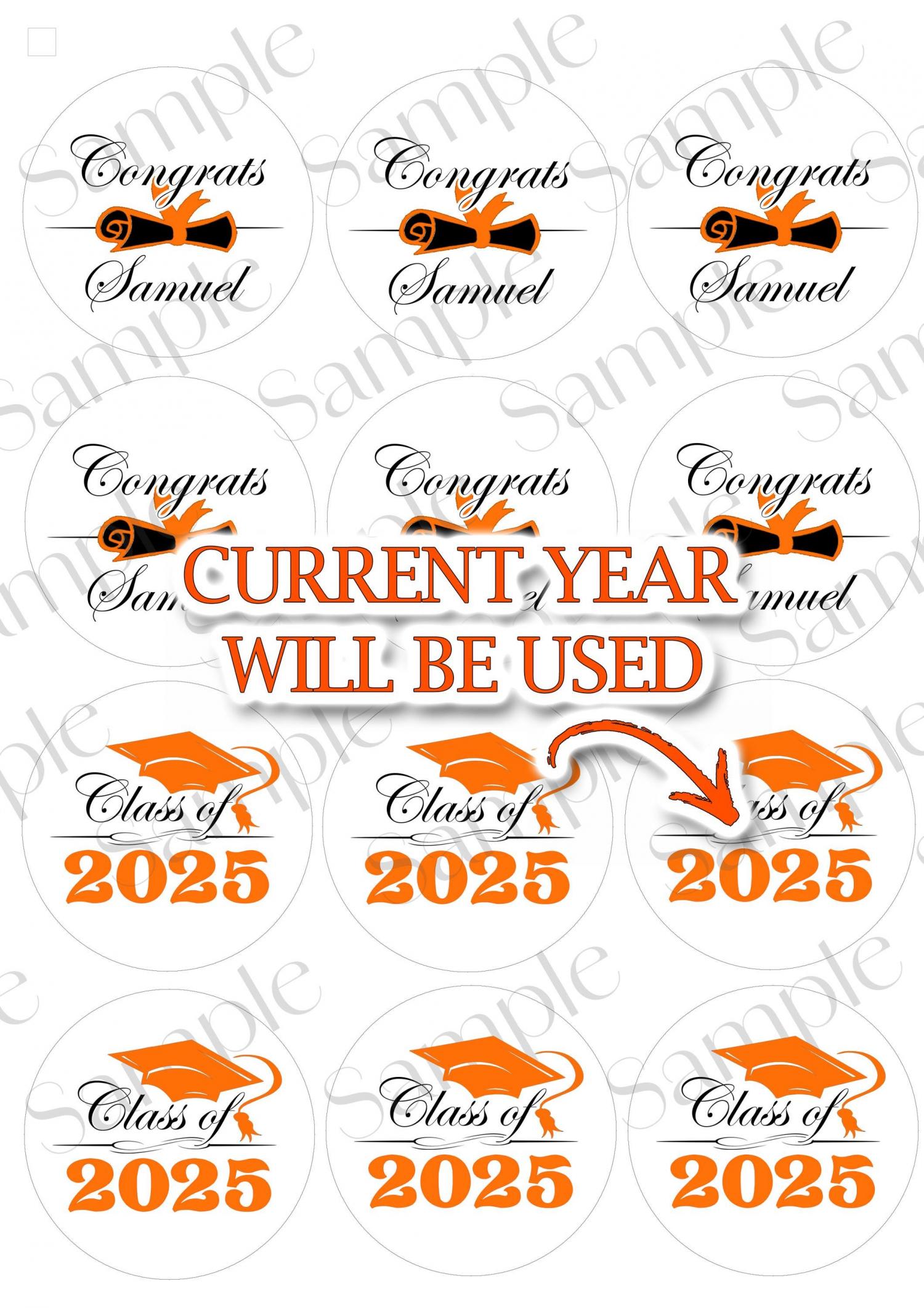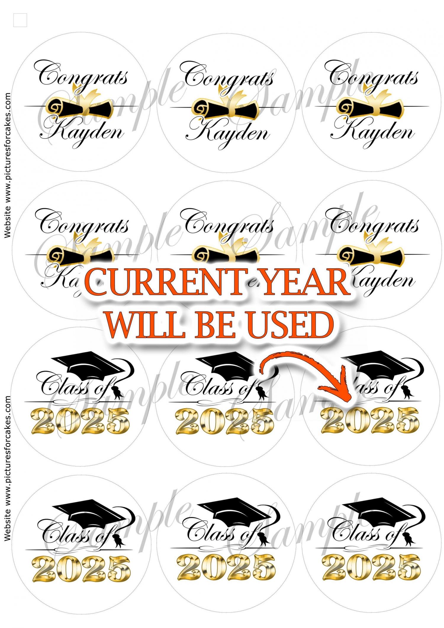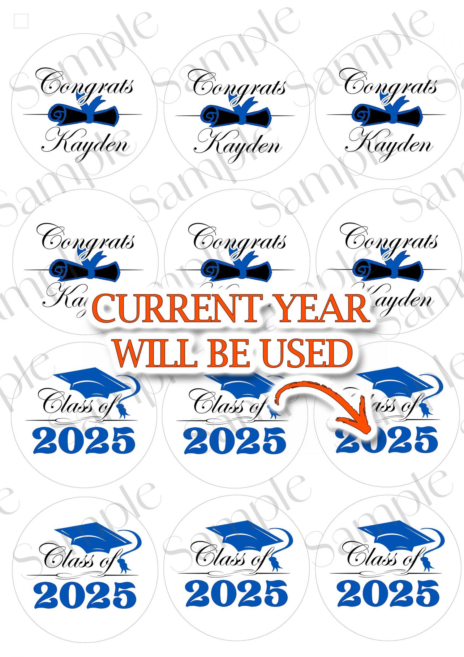La moitié dira l'année en cours et l'autre moitié sera personnalisée comme l'image montrée. Si vous souhaitez qu'ils indiquent tous l'année, je peux le faire aussi, faites-le moi savoir ! Fabriqué avec du papier glacé comestible PREMIUM et de l'encre comestible PREMIUM. Vous obtiendrez de magnifiques impressions!