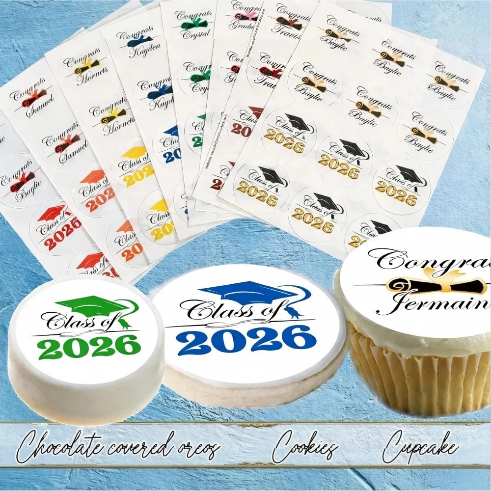 Des garnitures comestibles prédécoupées pour la remise des diplômes ! Les produits sont disponibles dans une variété de couleurs, y compris la couleur de l'eau, la couleur de l'huile, la couleur de l'eau et la couleur de l'eau. Je les offre dans une variété de couleurs, qui incluent : Rouge, Jaune, Orange, Vert, Bleu, Rose et Marron.