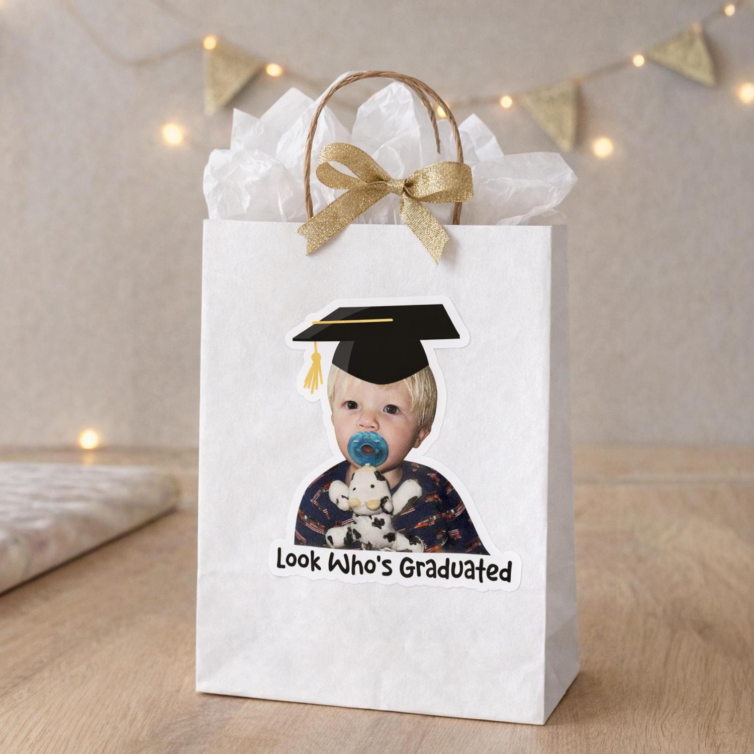 Transformez le moment dont votre diplômé est le plus fier en un souvenir amusant et partageable grâce à ces autocollants photo personnalisés pour la remise des diplômes. Doté d'une photo personnalisée, chaque autocollant capture la joie et la réussite de la remise des diplômes - parfait pour ajouter une touche personnelle aux faveurs de la fête de remise des diplômes, aux décorations ou aux notes de remerciement.