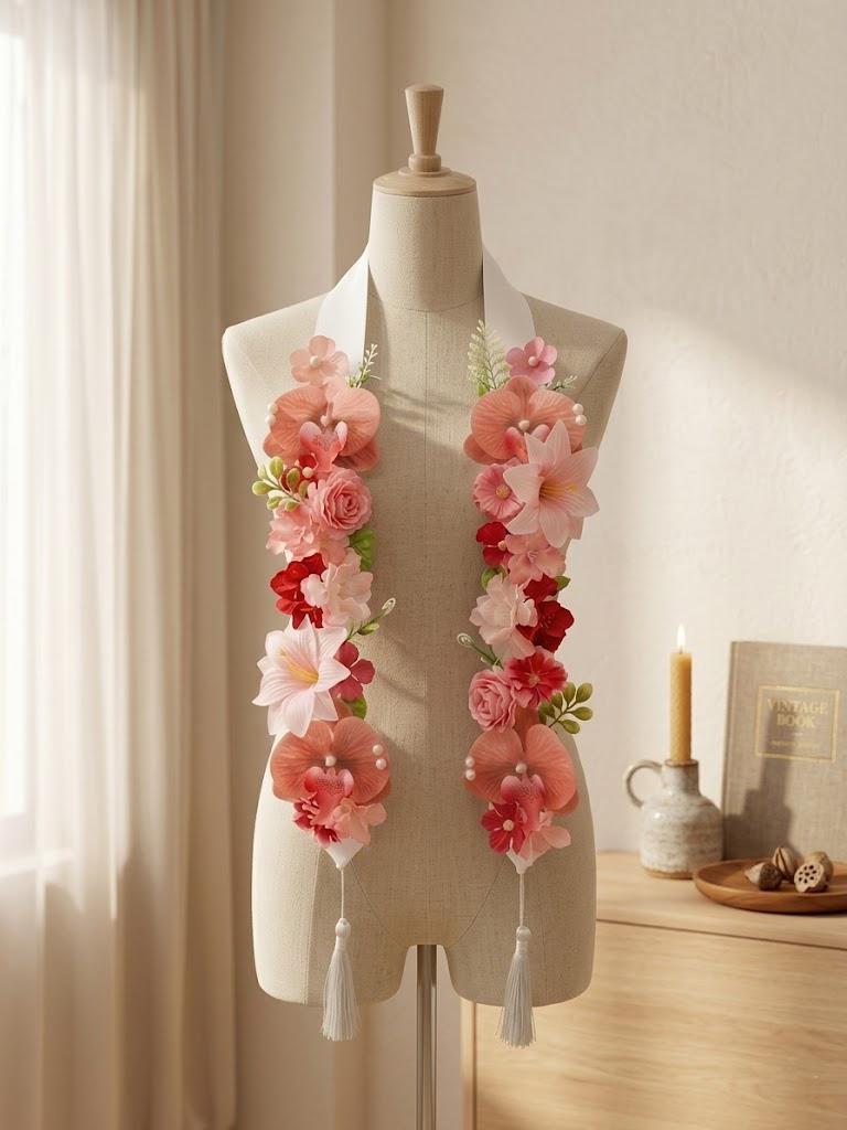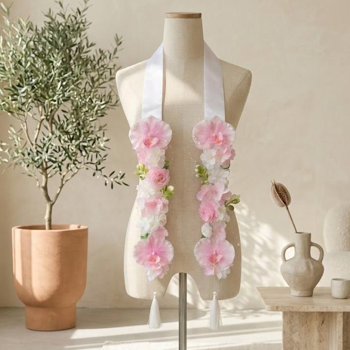 Conçue pour se draper magnifiquement sur n'importe quelle robe de fin d'études, cette étole florale rehausse chaque moment de la remise des diplômes, de la cérémonie de remise des diplômes aux photos de fin d'études et aux fêtes de fin d'études. Son design élégant et féminin ajoute une touche de couleur et de personnalité à n'importe quelle tenue, ce qui la rend idéale pour immortaliser des souvenirs inoubliables et servir de souvenir décoratif chéri longtemps après le jour de la remise des diplômes.