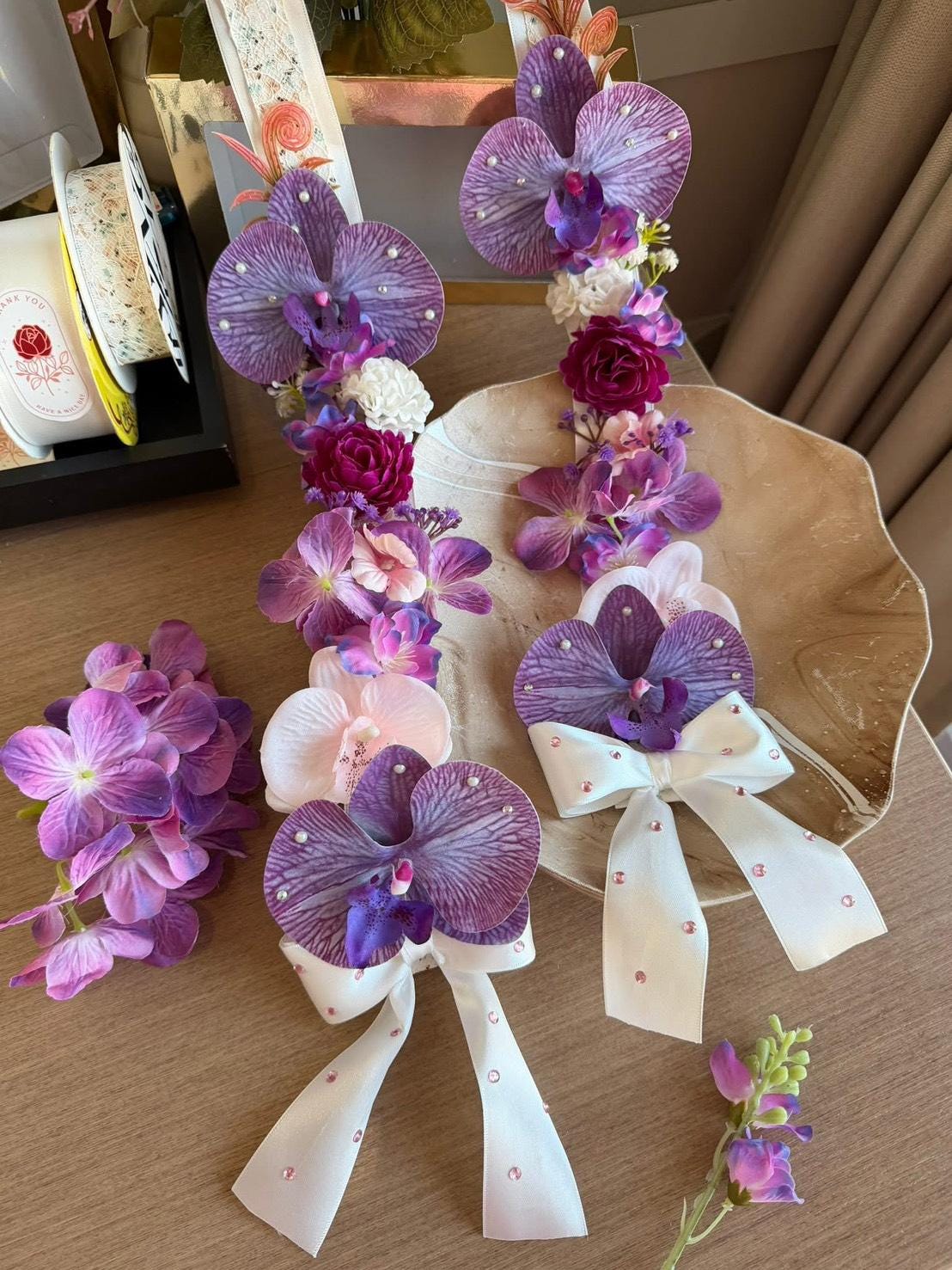 Ce Lei de remise de diplômes fait main est un accessoire artisanal époustouflant, conçu pour célébrer la réussite du diplômé. Il est composé d'une luxueuse composition d'orchidées artificielles de première qualité, de roses, de marguerites et d'autres fleurs éclatantes, agrémentée d'un élégant ruban de satin et d'un nœud décoratif aux détails étincelants. Alliant une beauté florale intemporelle à une qualité artisanale, c'est le cadeau de fin d'études idéal pour les diplômés du secondaire et de l'université, ajoutant une touche d'élégance et de célébration à n'importe quel look de fin d'études.