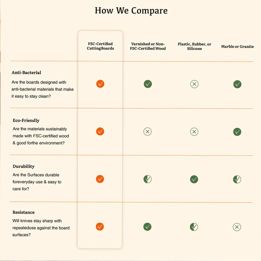 Fabriquée en bambou durable certifié FSC, cette planche à découper est exempte d'odeurs et de revêtements nocifs, ce qui garantit une surface de préparation des aliments sûre et saine. Le bambou est naturellement solide, durable et résistant aux fissures et à l'usure. Soigneusement polie pour obtenir une finition lisse et sans échardes, elle convient à la préparation d'une variété d'ingrédients tout en combinant des valeurs écologiques avec une durabilité à long terme.