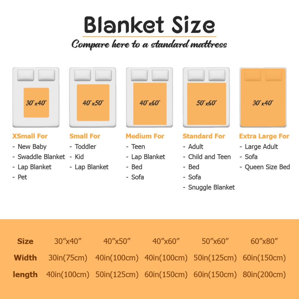 Mesure: Couverture polaire - 75 cm × 100 cm, 100 cm × 125 cm, 100 cm × 150 cm, 125 cm × 150 cm, 150 cm × 200 cm, Couverture sherpa - 100 cm × 125 cm, 125 cm × 150 cm, 150 cm × 200 cm
