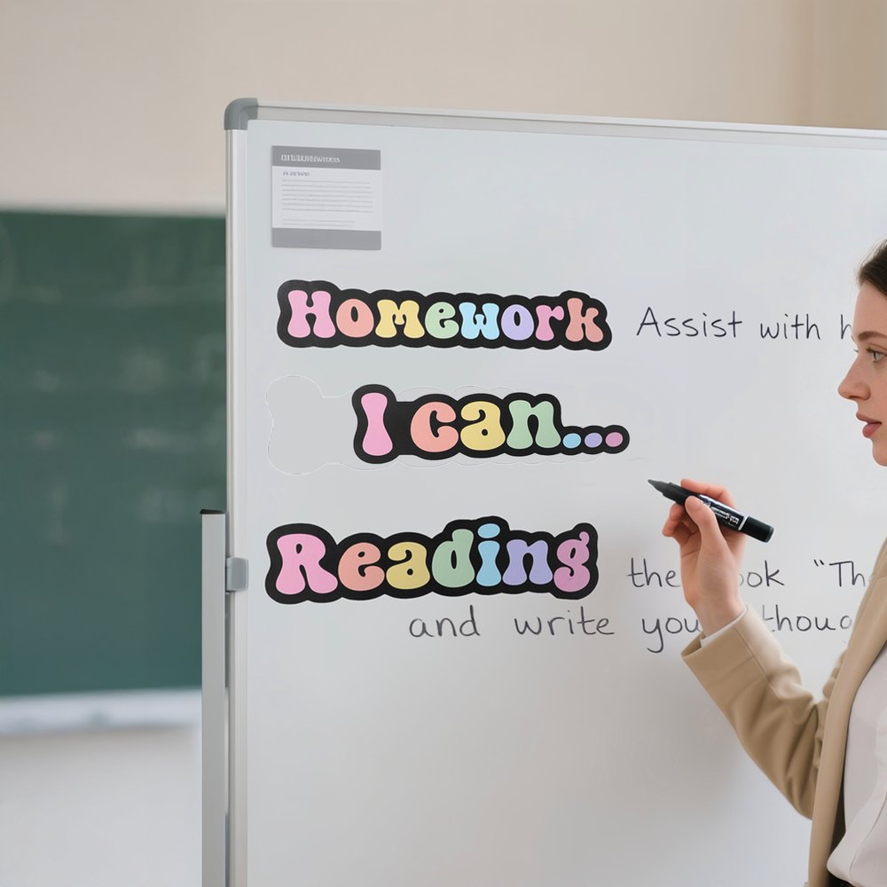 Chaque pièce est fabriquée avec des aimants de haute qualité, équilibrant l'épaisseur et la flexibilité pour une sensation de solidité et de durabilité. La forte adhérence magnétique les maintient en place sur les tableaux blancs, les classeurs et autres surfaces magnétiques, même en cas de repositionnement fréquent. Conçus pour durer, ils conservent un aspect propre et net à chaque cours.