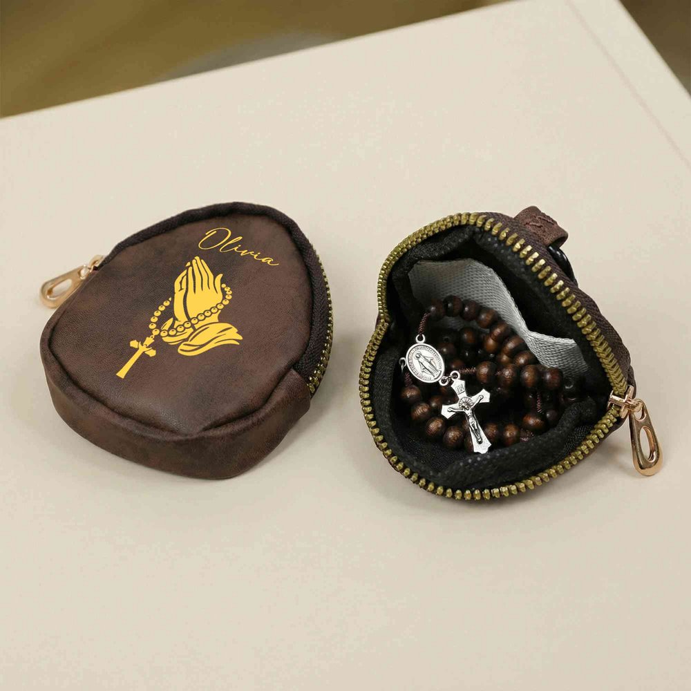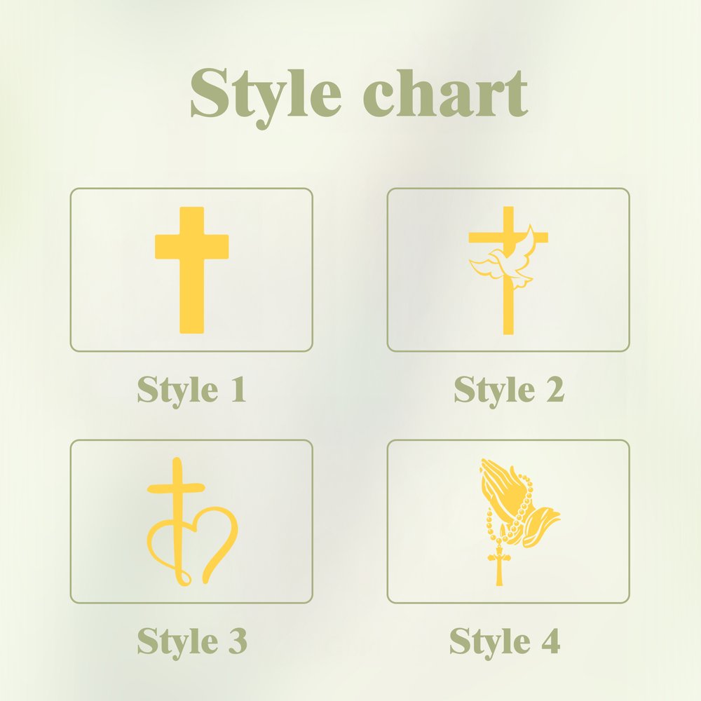Cette pochette à chapelet est conçue en fonction des croyances chrétiennes et présente une sélection de motifs chrétiens classiques, notamment la croix, la colombe de la paix, le chapelet et la Bible, qui transmettent avec précision l'essence de la foi et entrent en résonance avec la culture religieuse. Chaque pochette peut être personnalisée avec un nom, ce qui en fait un témoignage de foi unique.