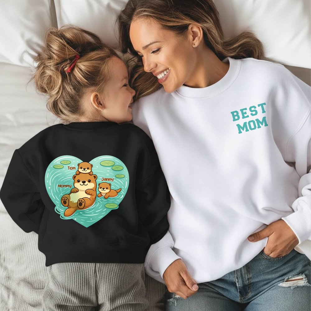 Inspiré par le lien chaleureux de la fête des mères, ce motif représente une maman loutre et son bébé, entourés de cœurs et d'éléments de l'étang. Personnalisable avec un nom, il constitue un souvenir familial significatif.