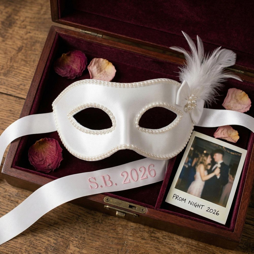 Entièrement personnalisé pour refléter votre style et célébrer votre grand jour, vous pouvez broder vos initiales, votre nom complet ou l'année de votre diplôme dans une variété de couleurs de fil délicates. Ce détail sur mesure transforme un masque de mascarade standard en un souvenir de fin d'études intemporel qui ajoute une touche personnelle et tendance à votre tenue de bal de fin d'année.