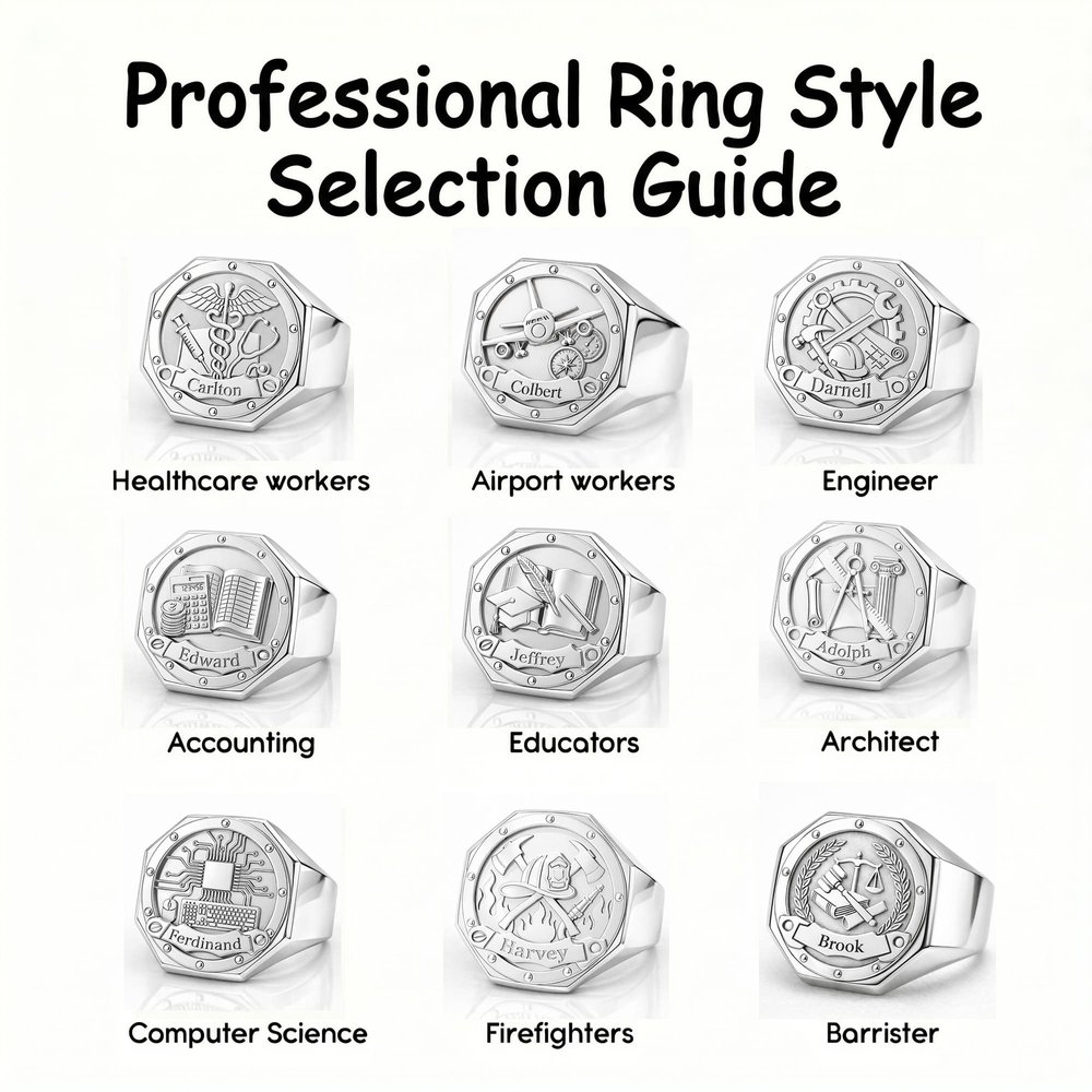 Entièrement personnalisée pour célébrer sa profession et son identité uniques, vous pouvez choisir parmi 9 modèles sur le thème de la carrière, adaptés à différentes professions, et graver son nom sur la bague pour créer une pièce unique et exclusive. Ce détail personnalisé transforme une bague standard en un symbole significatif de son esprit professionnel, de son identité et de ses réalisations durement gagnées, idéal pour les souvenirs individuels ou les commandes groupées d'équipes.