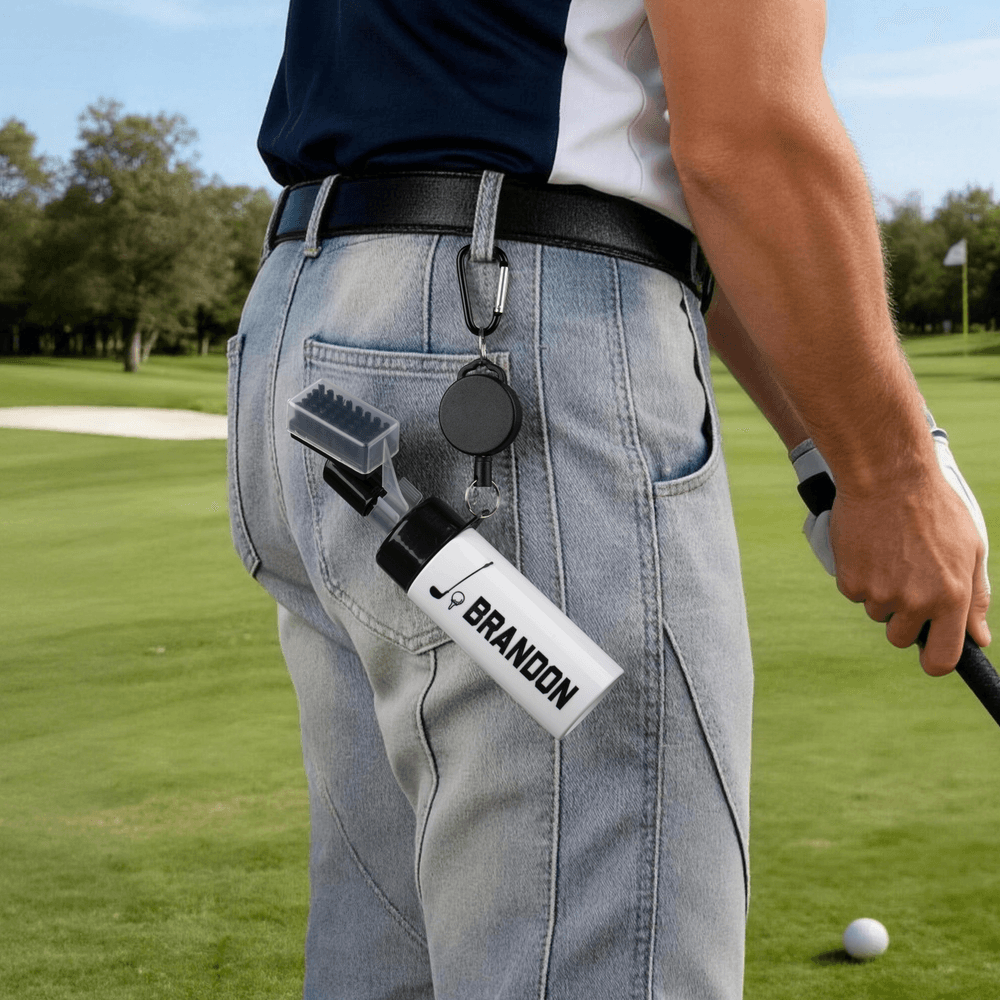 La brosse combine les fonctions de nettoyage par pulvérisation d'eau et de décontamination par brosse. En un seul clic, l'eau pulvérisée permet de rincer facilement le club de golf, tandis que la tête de la brosse nettoie rapidement la saleté des rainures de la face du club. Associée à l'essuyage avec une serviette, elle permet un processus de nettoyage en trois étapes qui rétablit les performances du club. La conception de la boucle de suspension portable permet de l'attacher facilement à un sac de golf ou à la taille, ce qui en fait un accessoire pratique indispensable sur le parcours de golf.