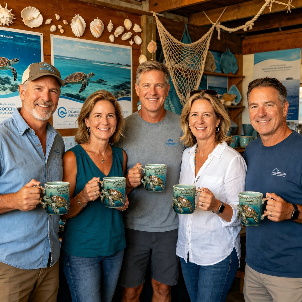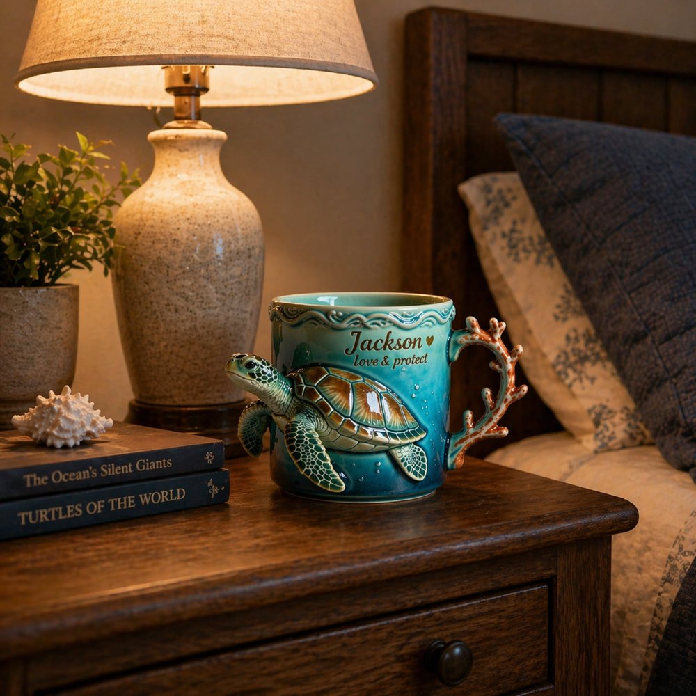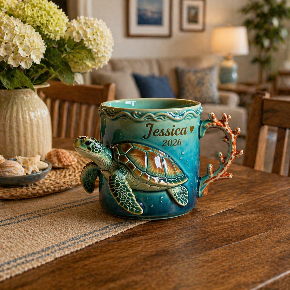 Personnalisez votre nom et l'année, et ramenez chez vous ce superbe mug en forme de tortue de mer. Laissez-la vous rappeler quotidiennement la beauté de l'océan, ou surprenez un être cher en lui offrant un cadeau qui célèbre son amour pour tout ce qui est côtier.