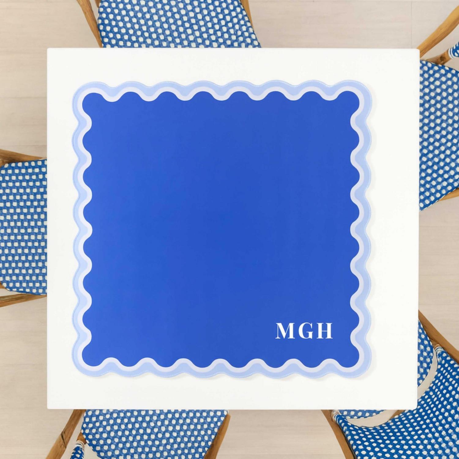 Ce tapis de mahjong personnalisé avec monogramme présente une forme carrée élégante avec des bords festonnés, personnalisable avec vos initiales ou votre monogramme pour créer une surface de jeu unique et élégante qui reflète votre identité, alliant un design sophistiqué à un jeu fonctionnel pour rehausser toute soirée de jeu de mahjong.