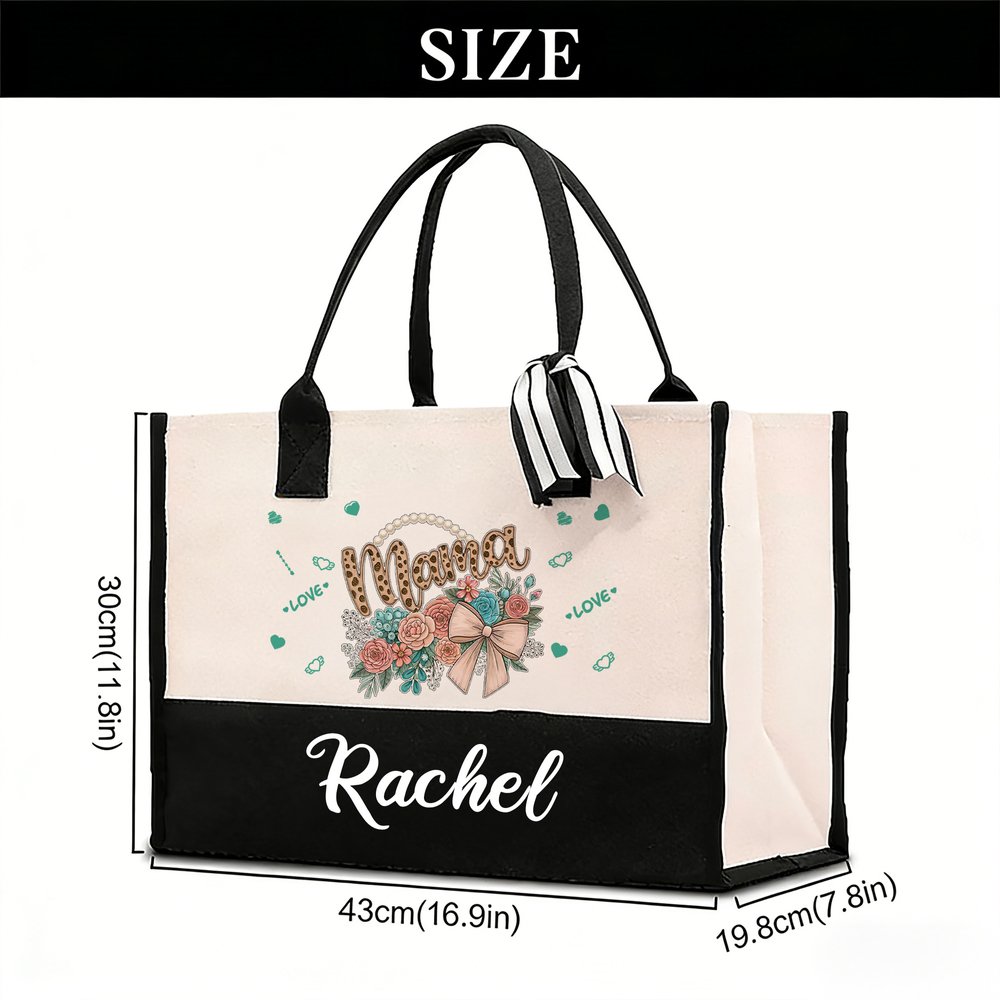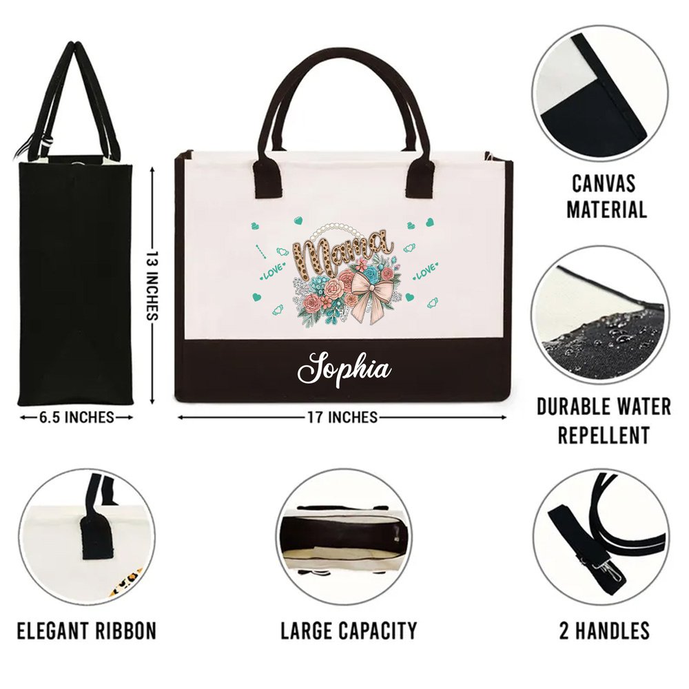 Célébrez l'incroyable maman ou grand-mère de votre vie avec l'ensemble fourre-tout et trousse de maquillage personnalisé Mama Floral Bow ! Ajoutez son nom personnalisé dès maintenant pour obtenir un ensemble durable, élégant et polyvalent qui est parfait pour un usage quotidien, les voyages et comme cadeau sincère qu'elle adorera.