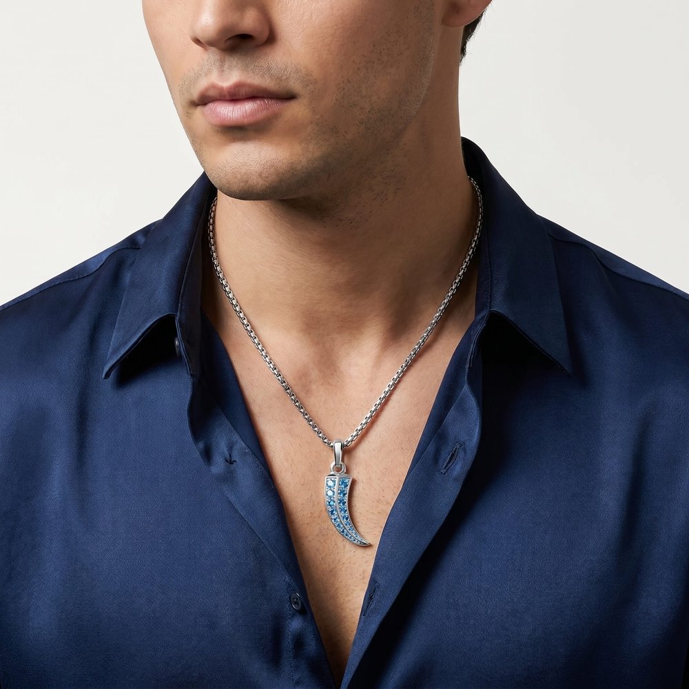 Le dos lisse et poli du pendentif assure un contact confortable avec la peau, tandis que la chaîne robuste est conçue pour être portée tous les jours et rester en place pendant les trajets quotidiens, les aventures et tout ce qui se trouve entre les deux. Il est suffisamment polyvalent pour s'associer à tout, des t-shirts aux chemises à boutons, ce qui en fait un accessoire indispensable à toute garde-robe.
