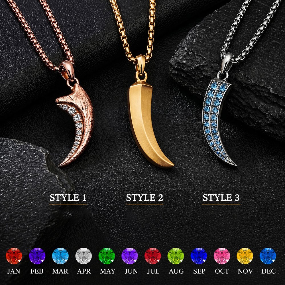 Mélange puissant de symbolisme, d'artisanat et de personnalisation, ce collier de pierres de naissance en forme de croc de loup est la pièce d'apparat par excellence pour l'homme moderne. Choisissez une pierre de naissance correspondant à son mois de naissance pour une touche personnelle, ajoutant une couleur vibrante et une signification au design. Enraciné dans l'esprit du loup, il incarne la force, le courage et l'individualité, ce qui en fait à la fois un accessoire de mode audacieux et un souvenir profondément significatif.