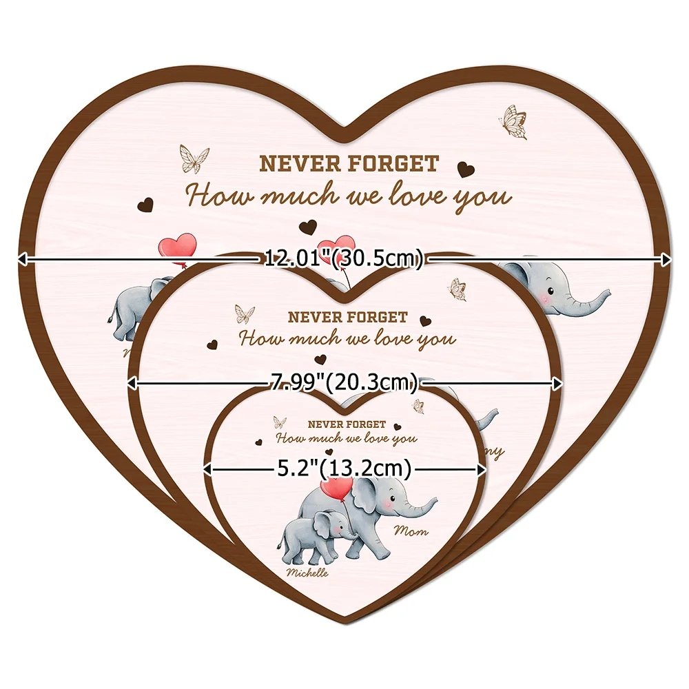 Cette pièce décorative est composée d'une mère éléphant et d'un éléphanteau, symbolisant joliment l'amour inconditionnel, la force et la camaraderie durable. L'image douce de la mère éléphant protégeant son petit crée une expression touchante de la dévotion d'une mère. Agrémenté d'un contour en forme de cœur et d'un texte chaleureux, il est également possible de personnaliser le nom, ce qui en fait un moyen significatif d'exprimer l'amour et l'appréciation d'une mère.