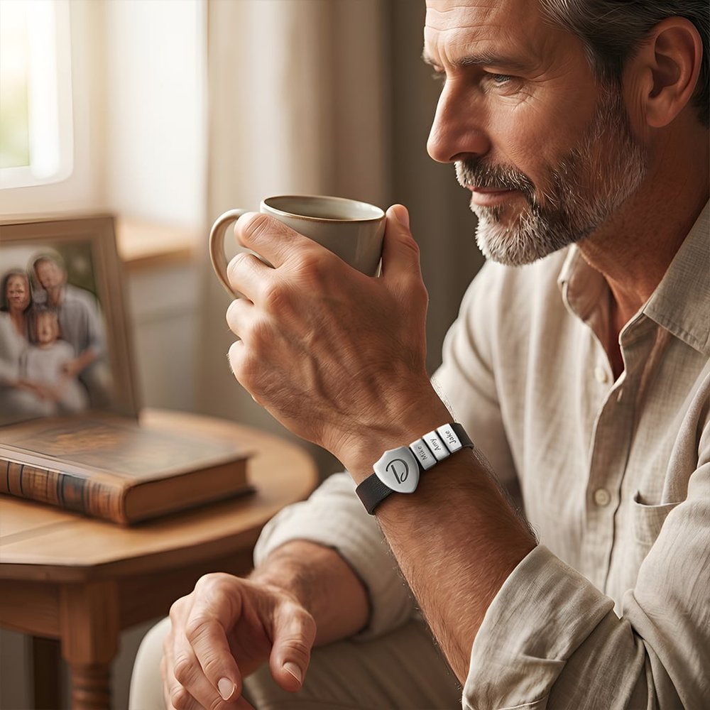 Il est idéal pour être porté au quotidien, que ce soit au travail, lors d'une sortie en famille ou pour se détendre à la maison. Il s'agit également d'un accessoire significatif pour les célébrations de la fête des pères, les dîners d'anniversaire ou pour lancer une conversation sur la famille et la foi. Portez-le seul ou empilez-le avec d'autres bracelets pour un look superposé.