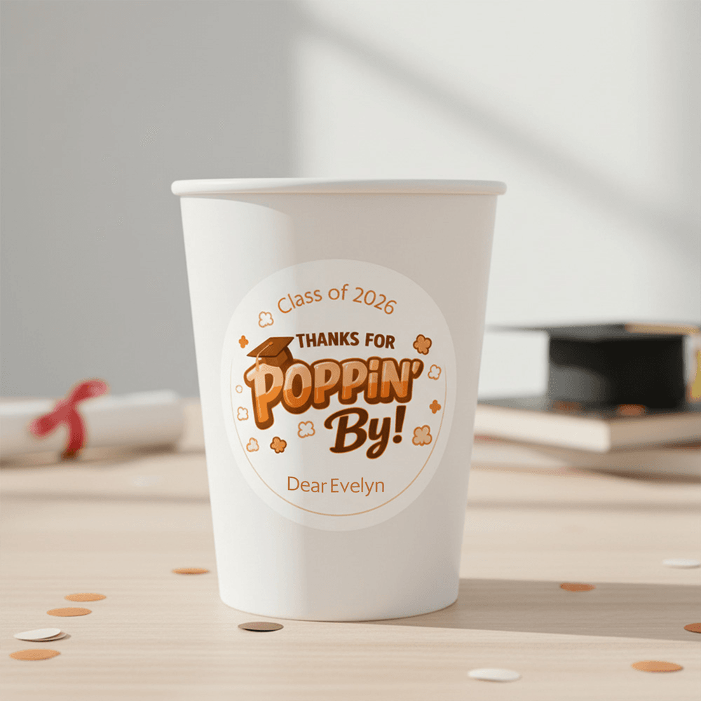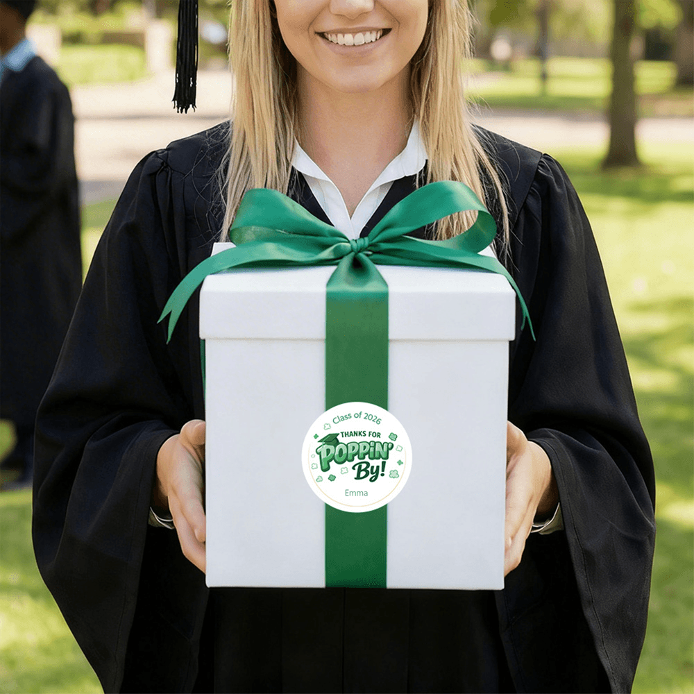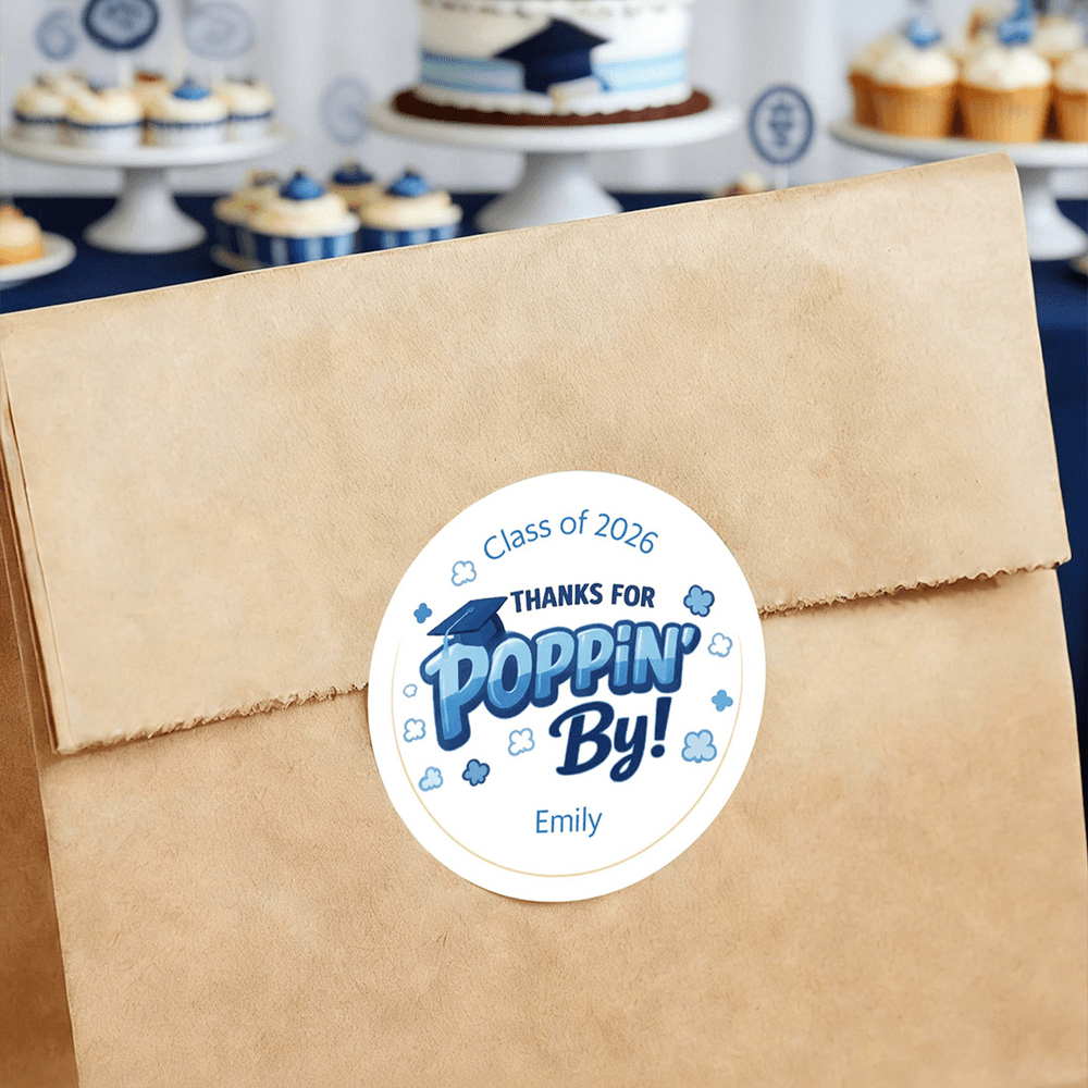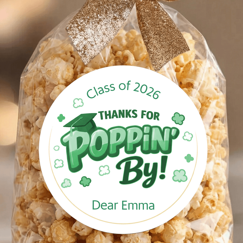 Doté d'un charmant message "Thank You for Poppin By", cet autocollant est magnifiquement conçu pour capturer l'esprit joyeux de la saison des remises de diplômes. Disponible dans une variété de couleurs et de styles, il peut être personnalisé avec l'année et le nom du diplômé, faisant de chaque autocollant un souvenir unique de la remise des diplômes. Il préserve magnifiquement cette étape spéciale tout en exprimant les félicitations les plus sincères et les meilleurs vœux pour l'avenir du diplômé.